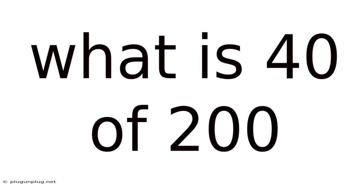 Finding "40 of 200" involves understanding the fundamental concepts of percentages and proportions. Think about it: this seemingly simple question unlocks a world of mathematical applications crucial for various fields, from everyday budgeting to complex scientific calculations. This article will not only answer the question directly but also dig into the underlying mathematical principles and explore various methods for solving similar problems, equipping you with the skills to tackle any percentage-related challenge Worth knowing..